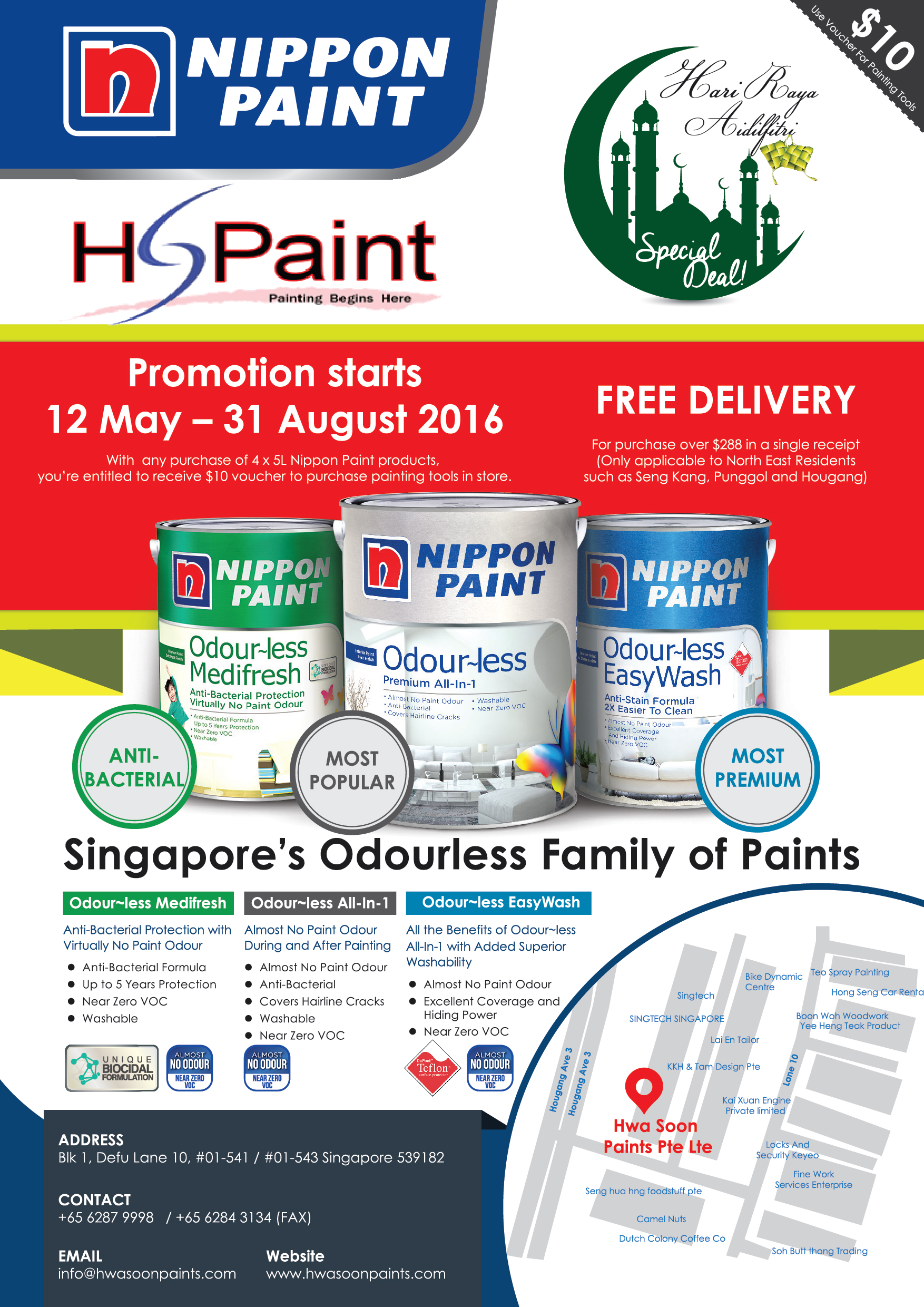 Free $10 Voucher, Free Delivery with Nippon Paint. Valid Till 31st Aug 2016.